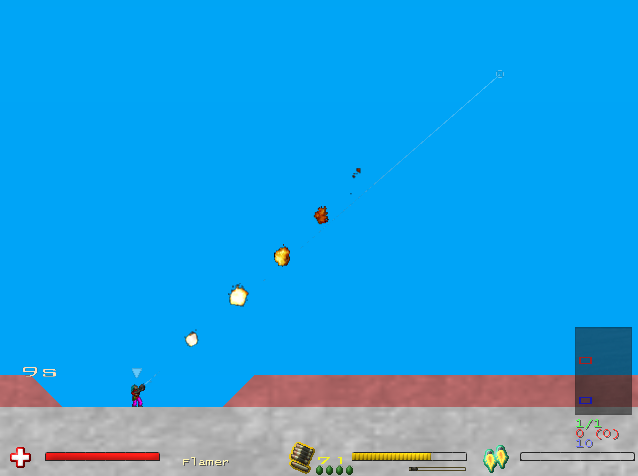 | Steps To Reproduce | 1- Open weapons.ini 2- Find the [Flamer] section 3- Change Bulletstyle to 4 (Bulletstyle=4) 4- Open a soldatserver 5- Grab a flamer and shoot away 6- You will see the shot exploding, but it will actually continue. For instance, if you shoot exactly upwards, you will eventually feel the explosion on you, even though you won't see it. | ||||||||||||