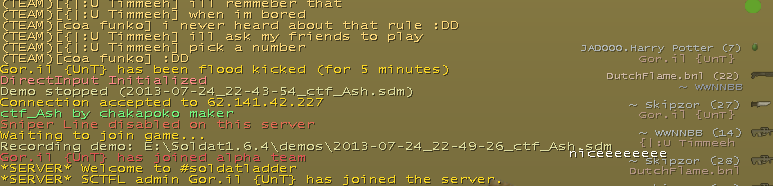 It seems that was the issue on at least the #soldatladder and #soldat.gather servers. The upcoming version will warn on stdout when a value for Flooding_Packets_Internet or Flooding_Packets_LAN is lower than default, and use the default instead. |