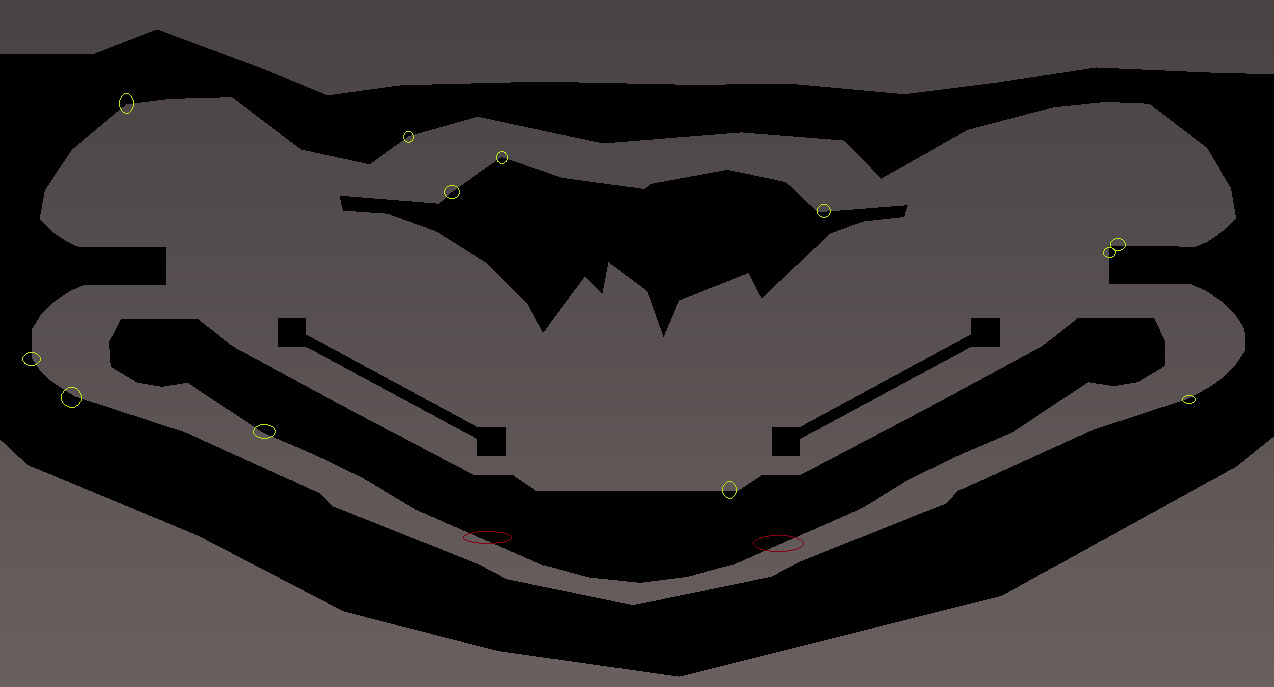 -Fixed invisible polygons not matching visible ones (red circles in attached screenshot)