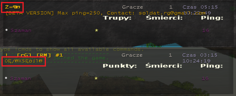 | Description | In the attached file you can see two servers that has random characters in their descriptions while in the soldat.ini file there are no such characters. Servers are running on linux (Debian). Soldat.ini fragment from the first (upper) server: Server_Name=! [rG] Knife Madness Clanmatch=0 Internet_Connection=3 Greeting_Message=Welcome to [rG] Knife Madness Greeting_Message2=gl&hf :) Greeting_Message3=Contact: soldat.rg@gmail.com Server_Info=[BETA VERSION] Max ping=250, Contact: soldat.rg@gmail.com Soldat.ini fragment from the second (bottom) server: Server_Name=! [rG] [RM] #1 Clanmatch=0 Internet_Connection=3 Greeting_Message=Welcome to [rG] [RM] Rambo #1 Greeting_Message2=gl&hf Greeting_Message3=Type !cmds for a list of available commands. Server_Info= I think that the same bug occurs on Windows servers ("Daggerkowy" servers have the same bug in the description and I've heard that they are running on Windows). | ||||||||||||
