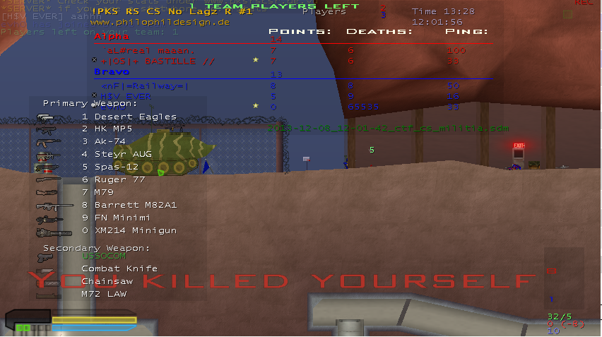 | Additional Information | this bug was happening in some older versions of soldat, 1.3 or 1.4 (dont remember which one), but was fixed in 1.5. It started appearing again in 1.6 betas. | ||||||||||||